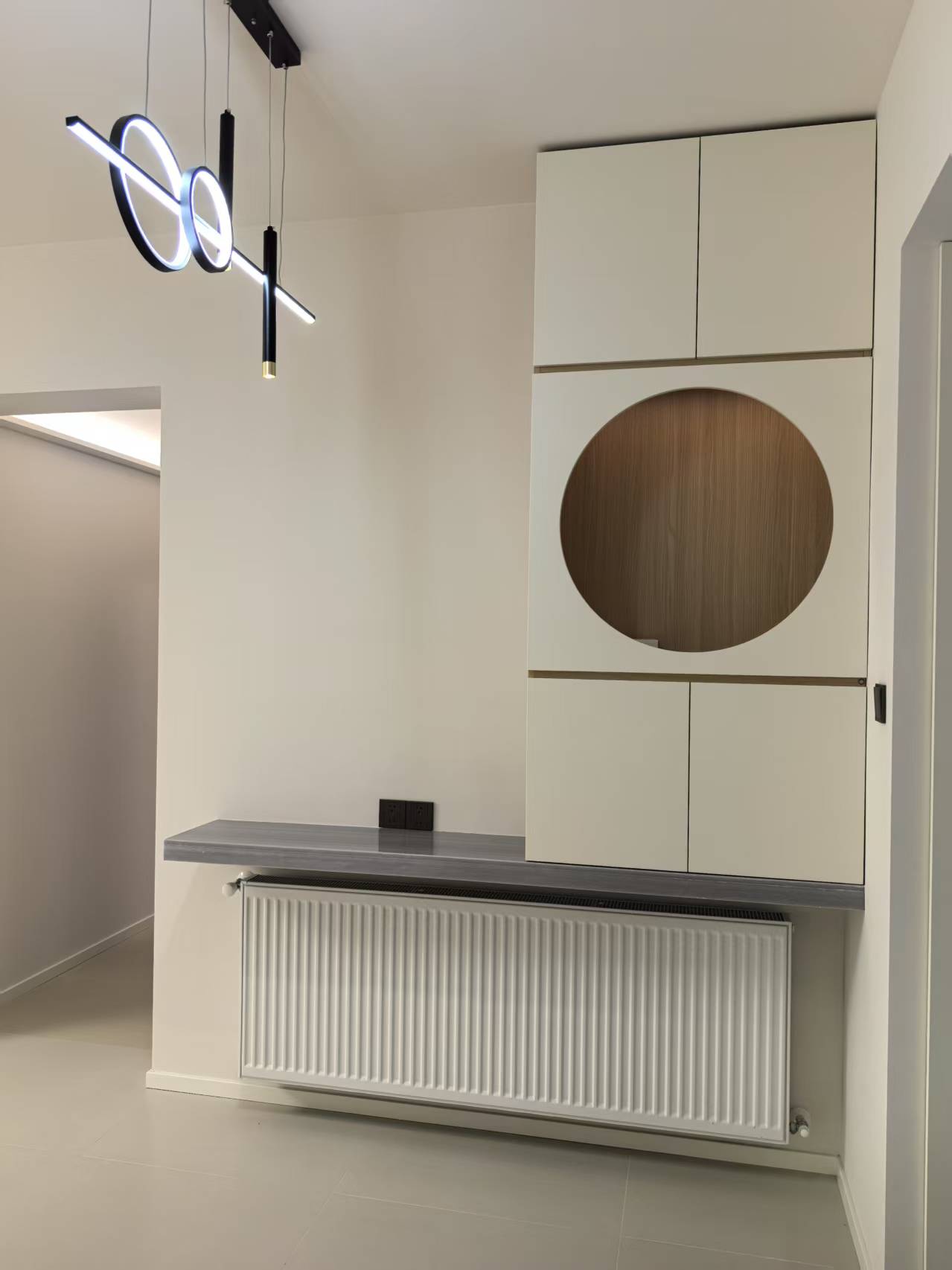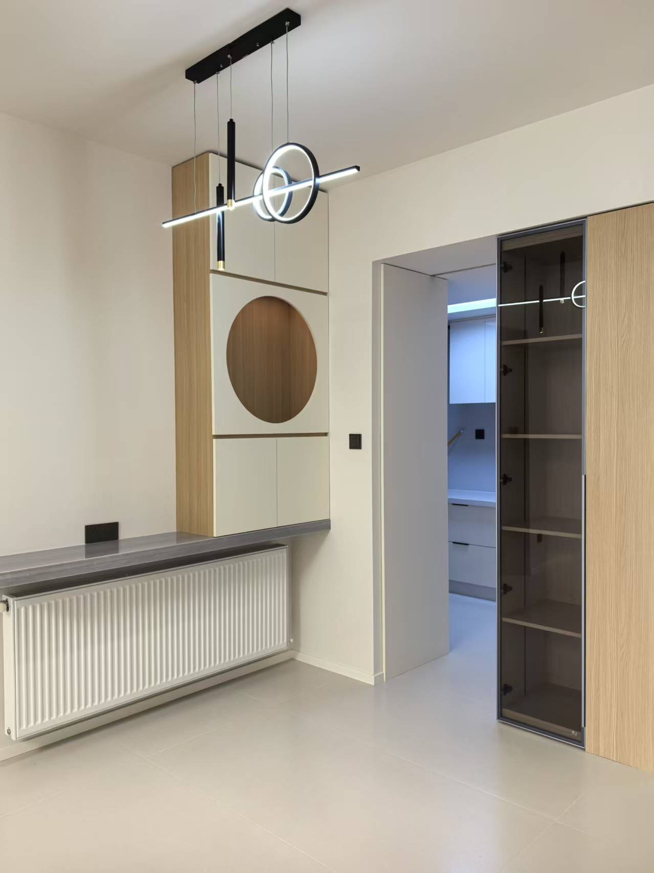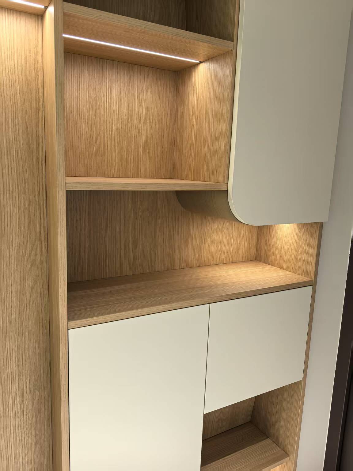 此次设计亮点颇多。拉长玄关鞋柜面积,巧妙隐藏厨房推拉门,增强空间整体感,同时打造实用的餐厅干果柜,提升便捷性与空间利用率。鞋柜采用的两个弧形设计,搭配灯带,既营造出空间层次感,又能收纳零碎小物件,处处设计都展现出美观与实用的统一。