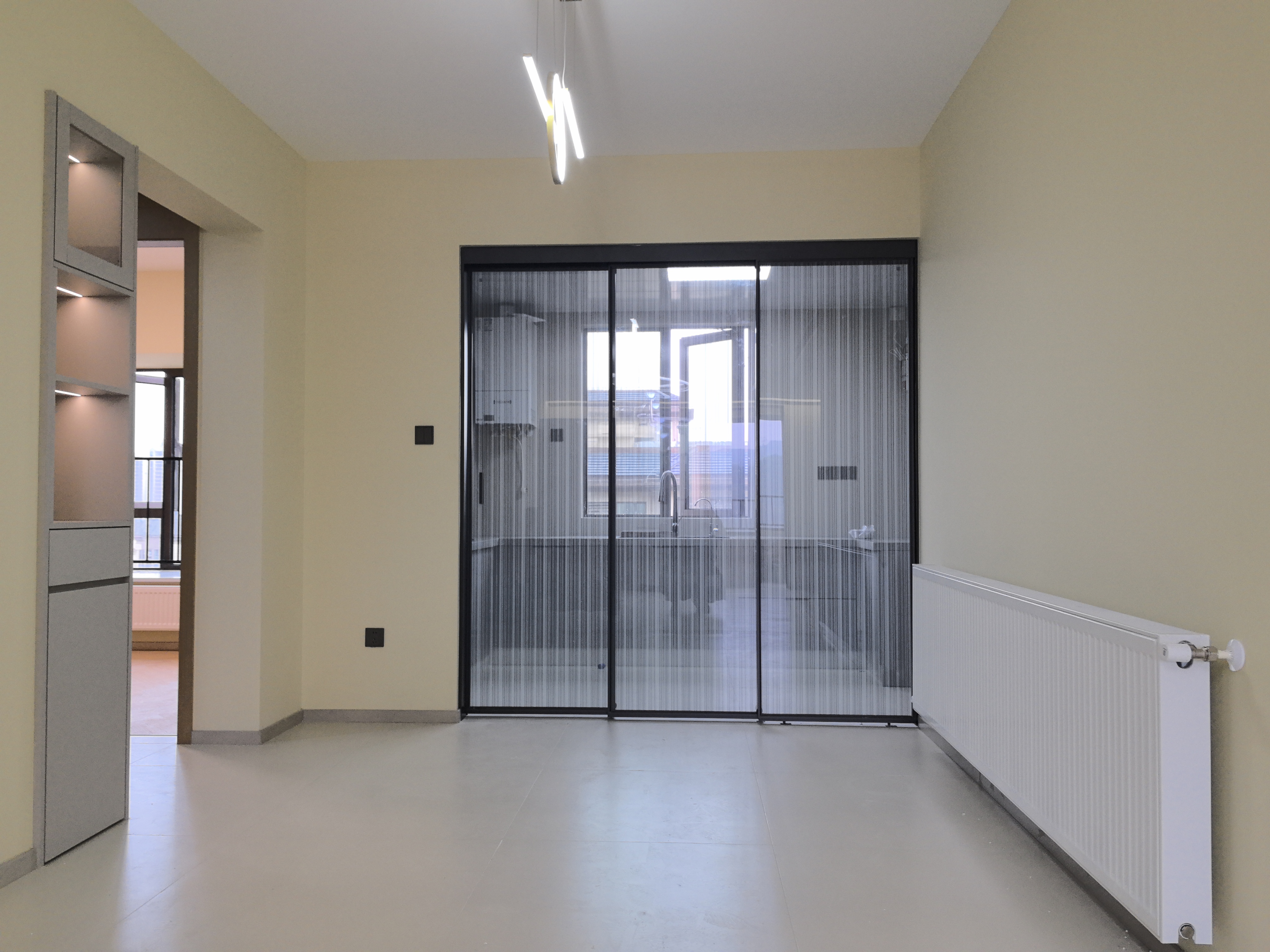 3. 采光与美观兼得:厨房门扩大且用条纹玻璃,光线充足,又赋予空间独特艺术美感。