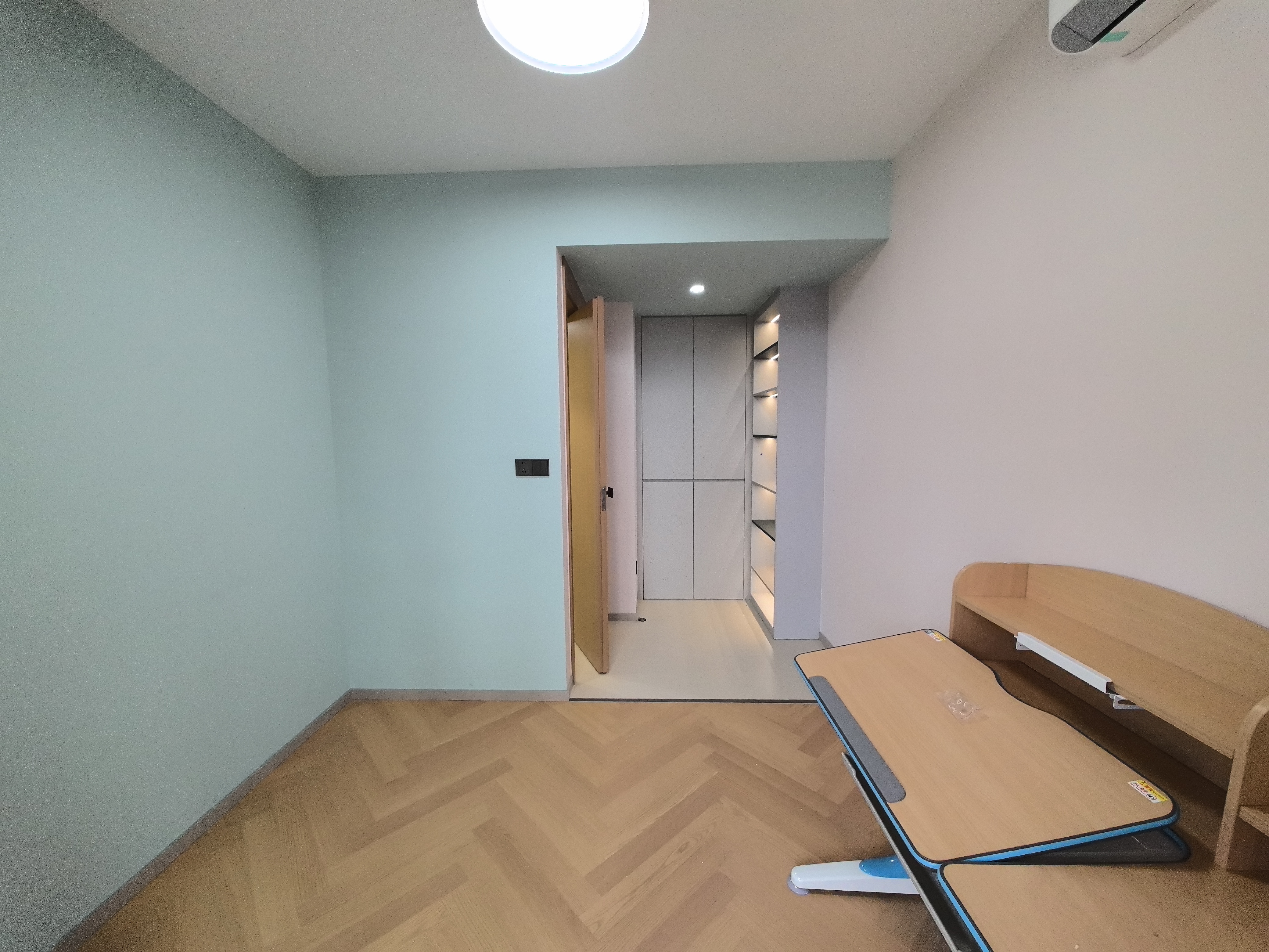 蓝色常与冷静、专注联系在一起。在书房使用浅蓝色,有助于集中注意力,让人更易进入深度思考和学习状态,减轻压力,营造宁静、沉稳的学习与工作环境,提升效率,使人思维更清晰。