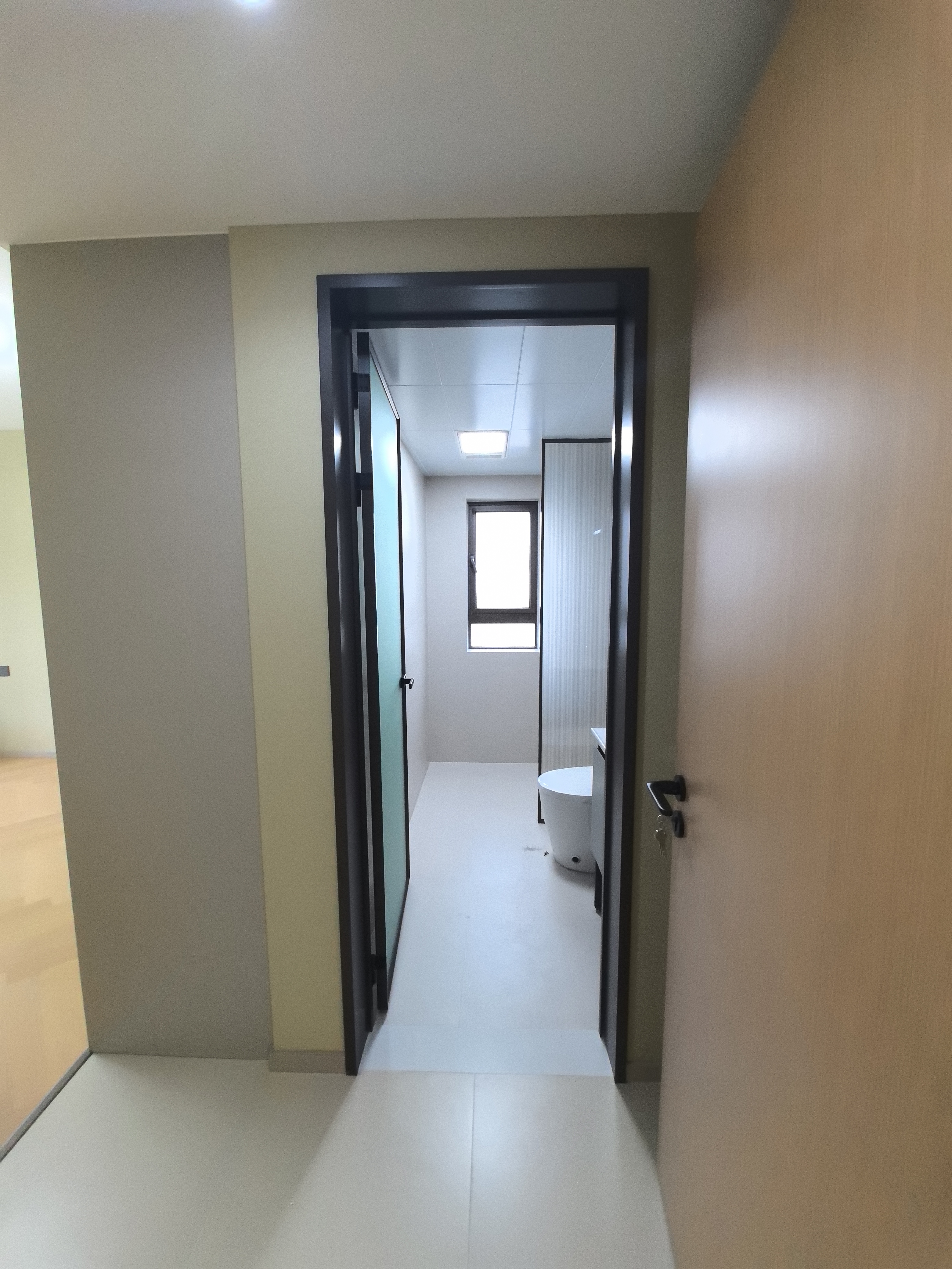 卫生间装艺术气息隔断,满足审美,营造格调,让人放松且彰显品味。用米白色墙砖,从心理上提亮空间,减轻压抑,传递整洁感,带来愉悦心情。